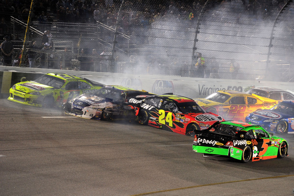 Jeff Gordon (24) is in deep trouble here. The racing over the last hour was wild (Photo: Getty Images for NASCAR)