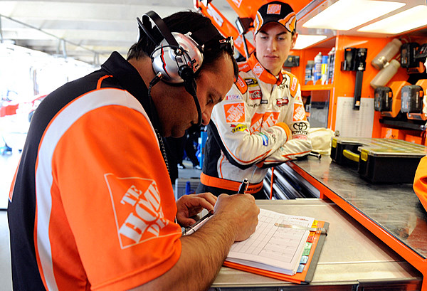 Highly touted Joey Logano (R), off to a slow start his rookie season, may finally be picking up steam. He qualified 10th for Sunday's 500 in Greg Zipadelli's Toyota(Photo: Getty Images for NASCAR)
