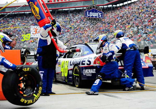 Jimmie Johnson, en route to winning Bristol last spring. But he's barely in the top-12 this year. (Photo: Getty Images for NASCAR)
