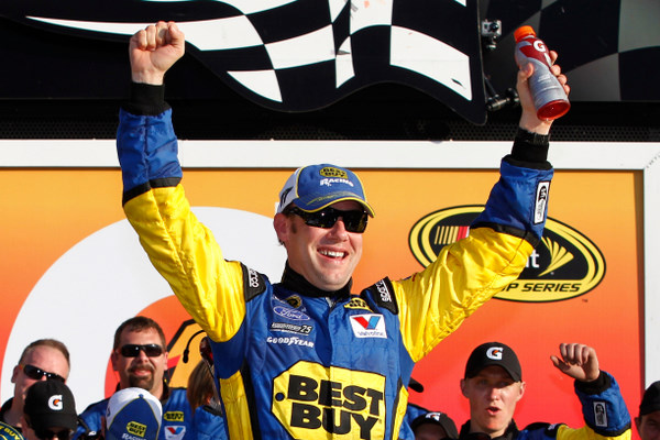 Matt Kenseth, in victory. Do these guys all practice this stuff in the mirror? (Photo: Getty Images for NASCAR)