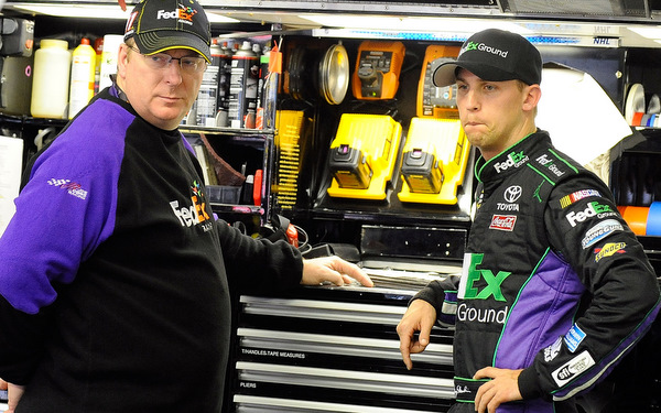 Denny Hamlin (R) and crew chief Mike Ford: in 2010 they almost toppled Jimmie Johnson. This season they're all but out of the chase in just the first week (Photo: Getty Images for NASCAR)