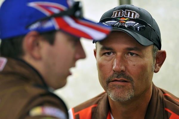 Can Kyle Busch (L) help crew chief Steve Addington (R) turn things around and make the championship playoffs? Or is this part of a downward spiral? (Photo: Toyota Motorsports)