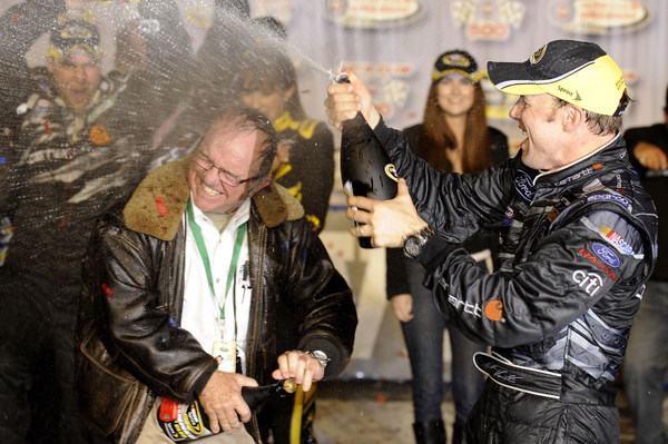 Two-for-two winner Matt Kenseth douses car owner Jack Roush in California's victory lane (Photo: Getty Images for NASCAR)