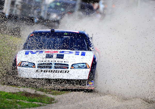 A gravel/sand trap, like this one that Sam Hornish Jr. ran through during a 2008 incident at Watkins Glen, might be needed over in that track's carousel turn too, after the frightening Hornish-Jeff Gordon-Jeff Burton crash there Monday (Photo: Getty Images for NASCAR)