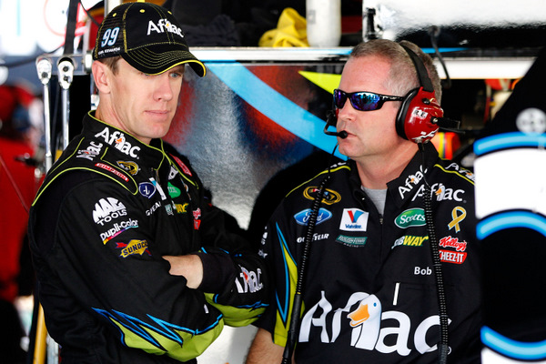 Carl Edwards (L) and crew chief Bob Osborne: Just how much did that pit road speeding penalty cost them in Sunday's Dover 400? (Photo: Getty Images for NASCAR)