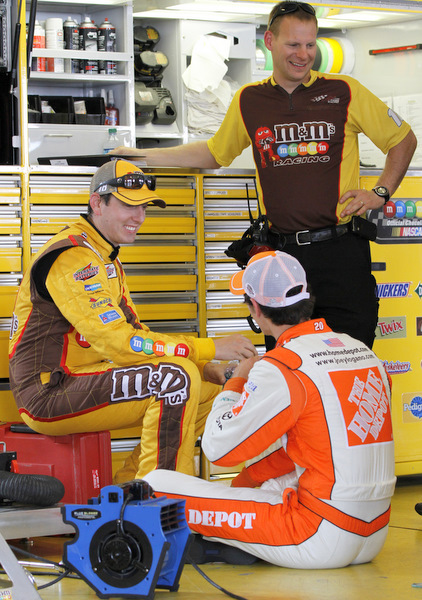 Crew chief Dave Rogers (standing), and Kyle Busch (L) and Joey Logano. Time for Joe Gibbs' guys to bounce back? (Photo: Toyota Motorsports)
