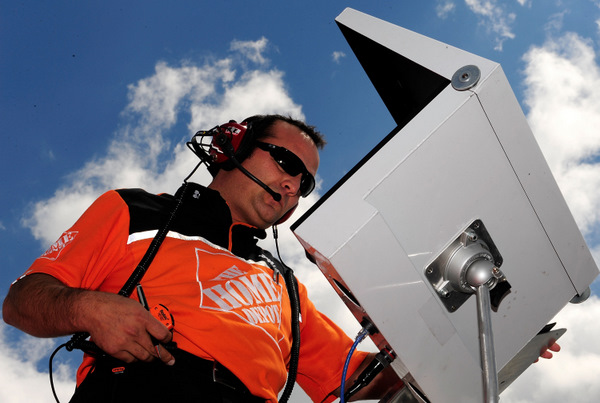 Darian Grubb, Tony Stewart's crew chief. And to which supercomputer is this laptop connected, the one in Switzerland or the one in Austria? (Photo: Getty Images for NASCAR)