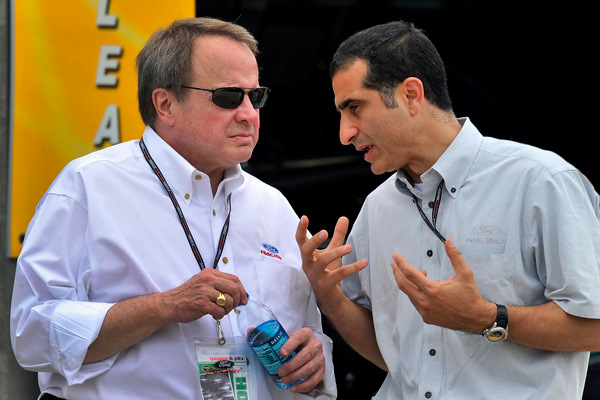 Jamie Allison (R), who heads Ford's racing operations, talking with Ford's Edsel Ford just before the start of NASCAR's annual Sprint Cup All-Star race (Photo: Autostock)
