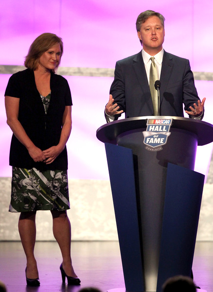 NASCAR's Brian France (R) makes the rules, but sister Lesa France Kennedy (L), head of the family's ISC track empire, and perhaps the most powerful female sports executive in America, has to fill all those seats. Are they both really on the same page in all this? (Photo: Getty Images for NASCAR)