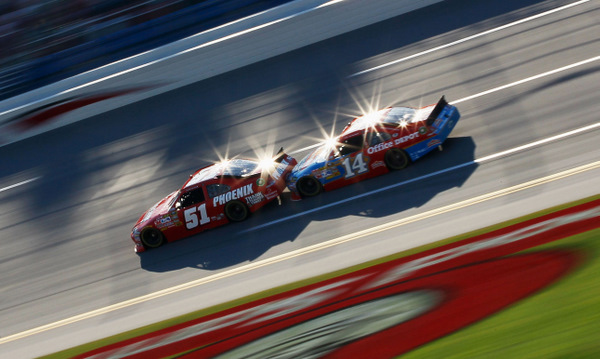 Tony Stewart (14) tandem-drafting with Landon Cassill for Sunday's Talladega 500. And Cassill is driving for veteran team owner James Finch, who won this race in 2009 with then little-known Brad Keselowski (Photo: Getty Images for NASCAR)