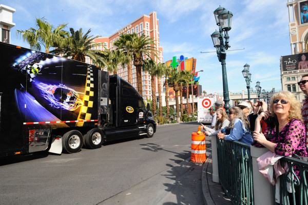 NASCAR's haulers rolling down Las Vegas Blvd, from California to Las Vegas Motor Speedway (Photo: Getty Images for NASCAR)