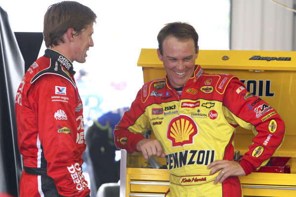 No longer buds? Carl Edwards (L) and Kevin Harvick (Photo: Getty Images for NASCAR)