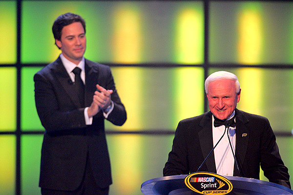 Cale Yarborough (R) and Jimmie Johnson, NASCAR's only three-in-a-row champions (Photo: Getty Images for NASCAR)