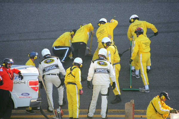 NASCAR has red-flagged the Daytona 500 for more than an hour now (beginning at 3:22 p.m. ET) to repair a hole in the asphalt between turns one and two.