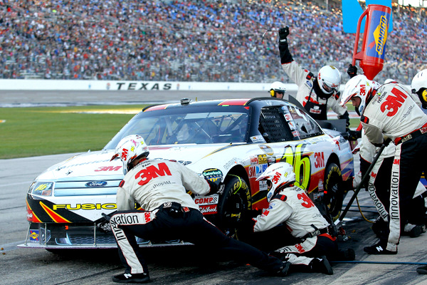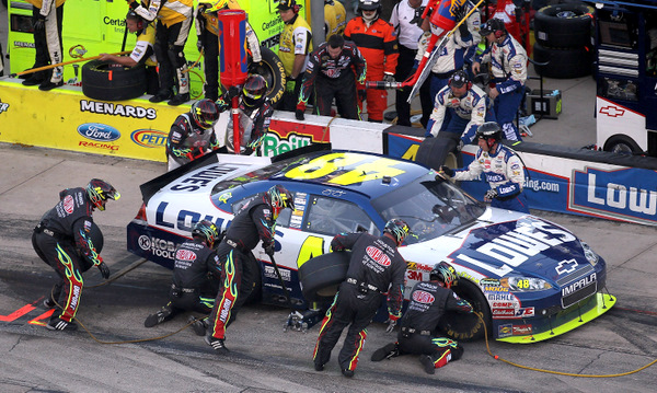Did Chad Knaus really fire his pit crew midway through the Texas 500? Yep. That's Jeff Gordon's crew over-the-wall for Jimmie Johnson. Panic? (Photo: Getty Images for NASCAR)