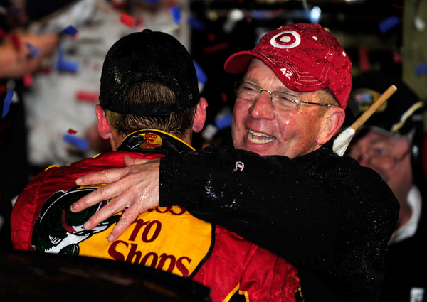 Steve Hmiel congratulating Jamie McMurrray after winning last season's Daytona 500 (Photo: Getty Images for NASCAR)