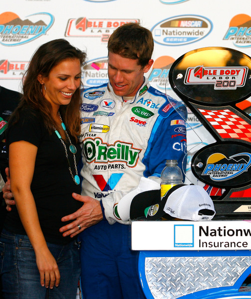Saturdays are much better than Sundays this season for Carl Edwards, here celebrating a Phoenix win with his wife Dr Kate Downey (Photo: Getty Images for NASCAR)