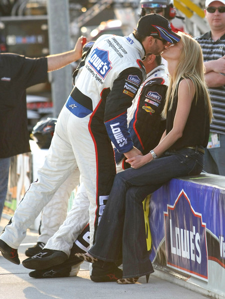 True love: Jimmie Johnson kisses wife Chandra (Photo by Elsa/Getty Images for NASCAR)
