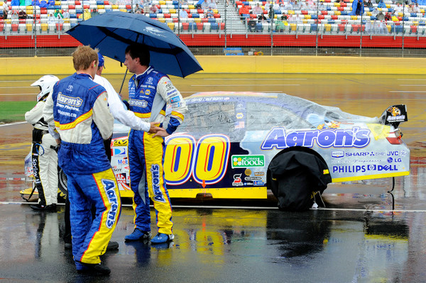 Reutimann wins the rain-soaked, rain-shortened 600, on a day of frustrations for everyone else