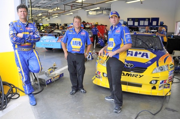 Michael Waltrip (L), and his crew. Waltrip will be cutting back on his NASCAR racing next season and turning the wheel over to Martin Truex Jr. (Photo: Toyota Motorsports)