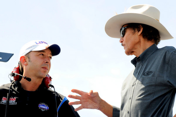 Chad Knaus (L) listens to Richard Petty, during Friday practice at Watkins Glen (Photo: Getty Images for NASCAR)