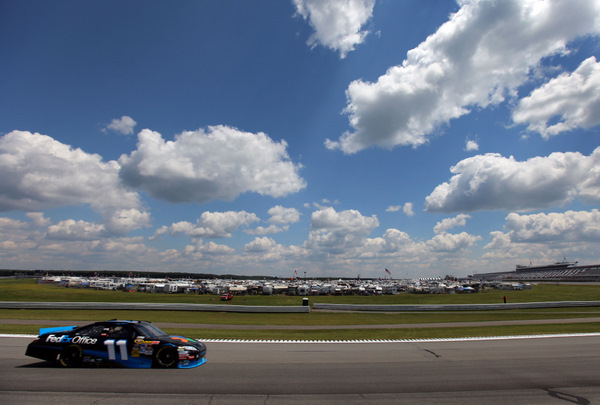 A beautiful day in the Poconos for Denny Hamlin...who is still a little miffed over that $50,000 'secret' penalty hit him with (Photo: Getty Images for NASCAR)