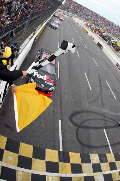 Denny Hamlin passed Jimmie Johnson for the lead for good on lap 363 and held Johnson at bay the rest of the way for his third win of the season (Photo: Getty Images for NASCAR)