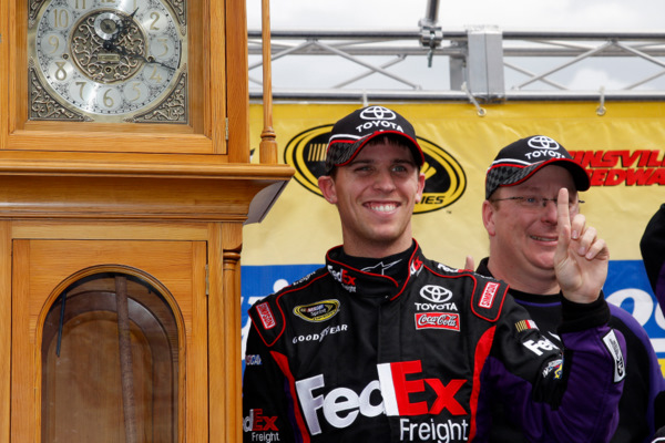 Denny Hamlin, celebrating Martinsville 500 win with crew chief Mike Ford (Photo: Toyota Motorsports)
