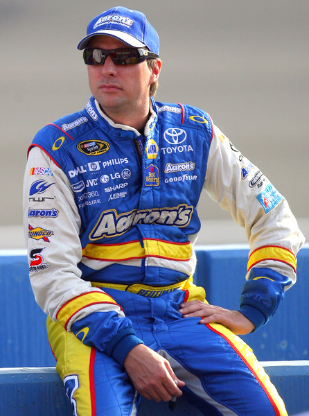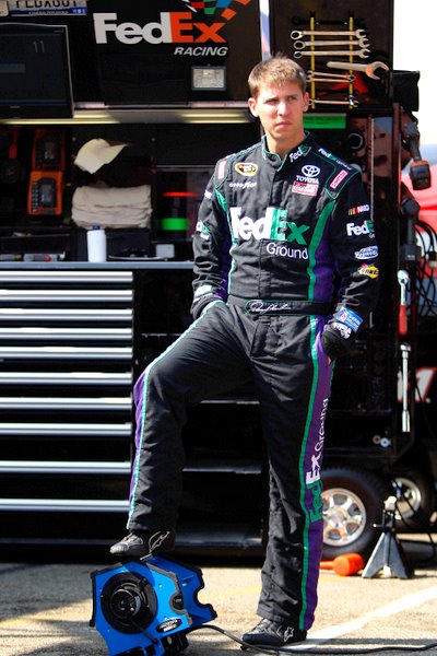 Surprise! Usually mediocre in qualifying, 'chaser' Denny Hamlin sneaks off with a big one, winning the pole for the fourth race of the 10-race championship playoffs (Photo: Getty Images for NASCAR)