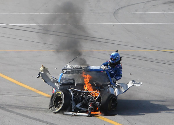 Edwards and other drivers were clearly shaken by the crash, and angry. Edwards' car smashed down on Ryan Newman's roof and then caught fire.