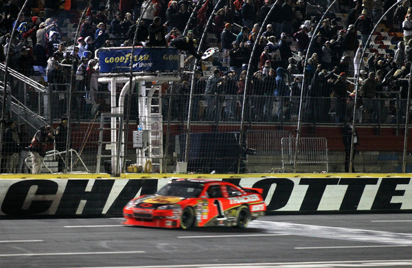 Jamie McMurray, a big-game player all season for Chip Ganassi, added to his career-best season with a sprint to victory in Saturday night's Charlotte Bank of America 500, leaving Kyle Busch and Jimmie Johnson duking it out in his wake for second.