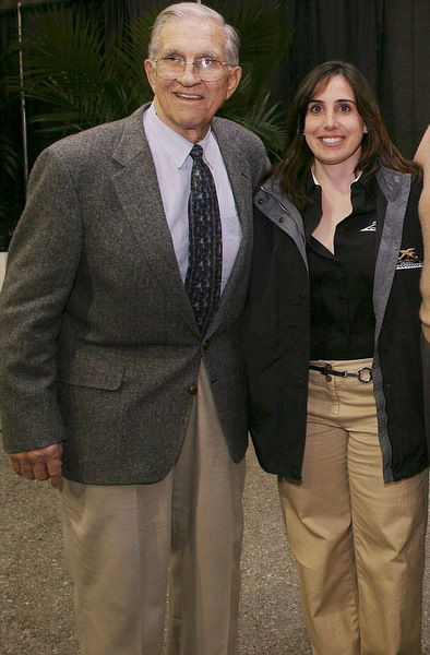 California's Gillian Zucker (R), with the late Les Richter, NASCAR's legendary West Coast promotion man...June 12th (Photo: Getty Images for NASCAR)