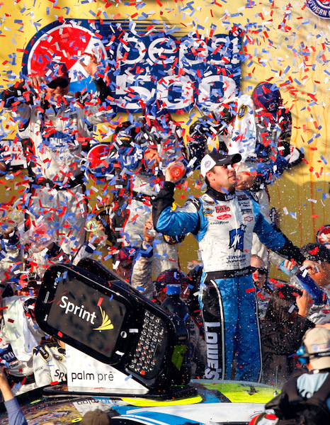 And when Johnson did his victory burnout, he kept playing and playing and playing, until NASCAR finally had to call him to come to Victory Lane.