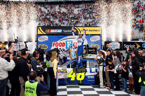 Jimmie Johnson is on a tear....both lucky and good, again, in winning Bristol, which puts him just 14 points out of the Sprint Cup tour lead (Photo: Getty Images for NASCAR)