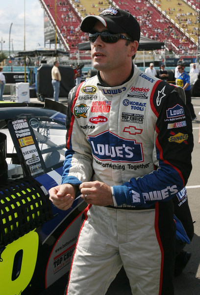 An anxious Jimmie Johnson checks out his time on the scoring tower (Photo: Getty Images for NASCAR)