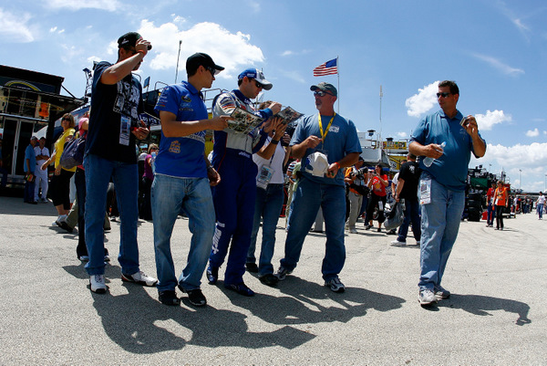 Jimmie Johnson signing autographs in Chicago, before flying home to his new daughter (Photo: Getty Images for NASCAR)