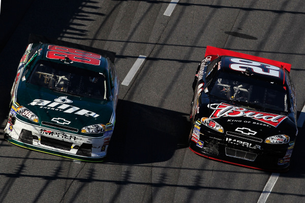 Remember the finish here in the spring: Dale Earnhardt Jr. (L) was on his way to victory, until he opened the door for Kevin Harvick (R) in the final miles (Photo: Getty Images for NASCAR)