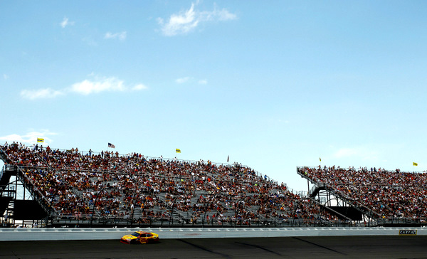 Kevin Harvick, stands out against the SAFER wall. The crowd was announced at 105,000, and it was nice, considering the economy. But there were some holes. At least traffic control was smooth and brisk (Photo: Getty Images for NASCAR)