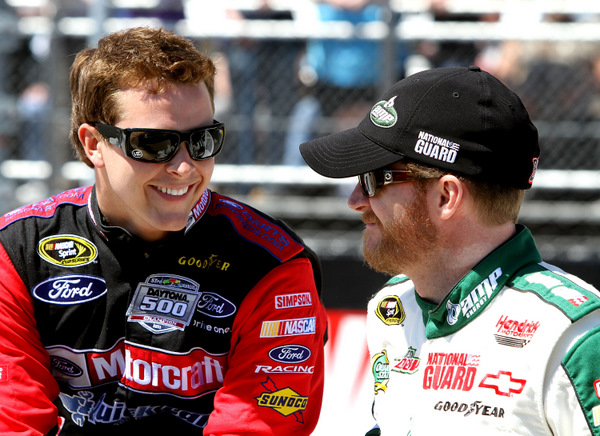 Trevor Bayne (L, with Dale Earnhardt Jr.) still doesn't know much about the mysterious illness that has sidelined the Daytona 500 winner for more than a month. But he says he'll be back at the wheel next week at Kansas in the Nationwide race (Photo: Getty Images for NASCAR)