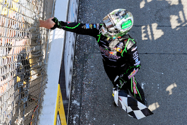 Kyle Busch in victory at Michigan. And ready to take the championship game right at Jimmie Johnson (Photo: Getty Images for NASCAR)