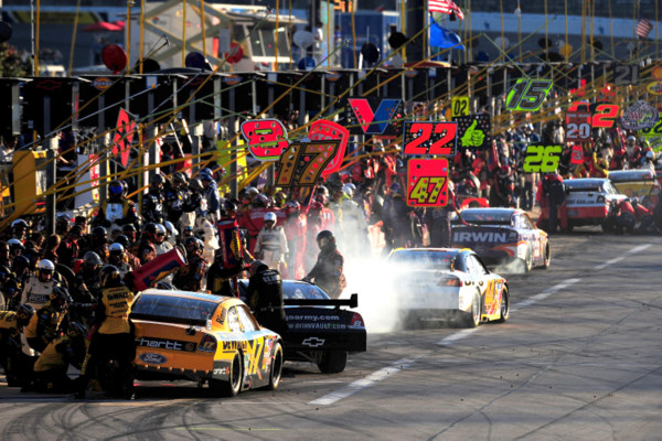 Pit road: not for the weak of heart. (Photo: Getty Images for NASCAR)