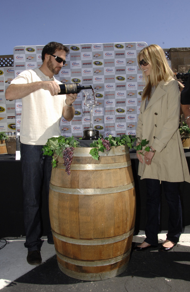 So is Jimmie Johnson (here with wife Chandra) really this confident about Saturday's Phoenix 500? Nope, just doing some PR work at Sonoma for the June tour stop (Photo: Getty Images for NASCAR)