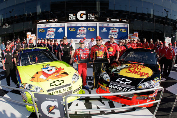 On the other hand, the other Childress-powered drivers didn't fare so well: Clint Bowyer 22nd, Jeff Burton 31st, Casey Mears 40th, and Shootout winner Kevin Harvick 49th.