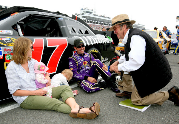 Want a good pick for Saturday's Kentucky 400? Might consider Matt Kenseth, here with team owner Jack Roush, and Matt's wife Katie and daughters Kaylin and Grace (Photo: Getty Images for NASCAR)
