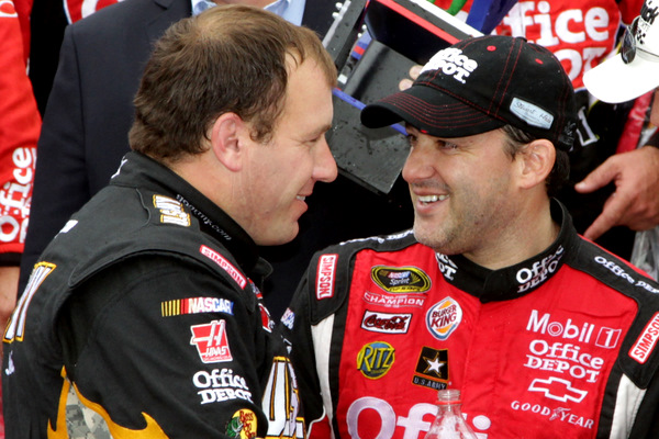 Ryan Newman (L) won New Hampshire winner in July, and teammate/boss Tony Stewart, winner at Chicago Monday. Things are looking pretty good for Newman and Stewart right now. So why is Stewart acting like such a weirdo? Is something going on behind the scenes? And who do we get this week: Good Tony or Bad Tony? (Photo: Getty Images for NASCAR)