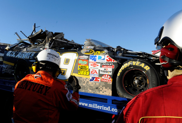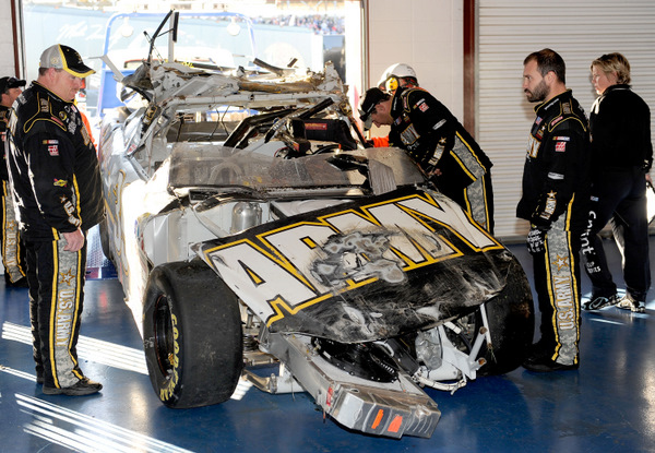 The remains of Ryan Newman's Chevy (Photo: Getty Images for NASCAR)