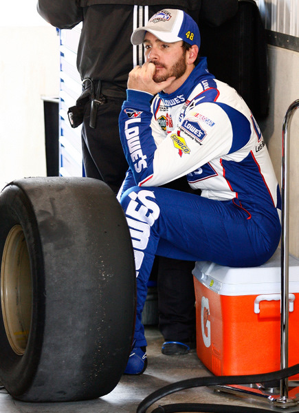 Jimmie Johnson ponders the rain at Martinsville (Photo: Getty Images for NASCAR)