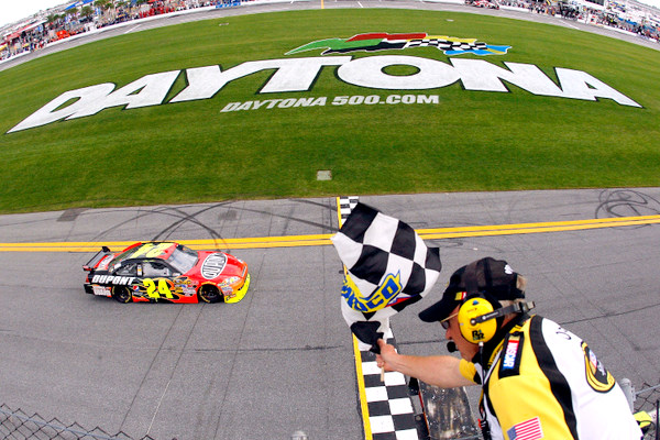 Jeff Gordon at the finish line of Thursday's first Daytona 150 (Photo by Chris Graythen/Getty Images)