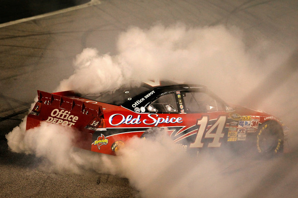 Smoke smokes 'em in victory burnout after beating Carl Edwards and Jimmie Johnson (Photo: Getty Images for NASCAR)