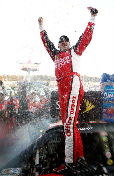 You want to try Jimmie Johnson on the high side? Be my guest. But Tony Stewart makes the pass stick, and wins Sunday's Martinsville 500 (Photo: Getty Images for NASCAR)